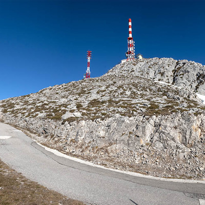 Diseño: Imagen centrada en la antenas del recorrido, tan identificativas y la imagen de montaña.